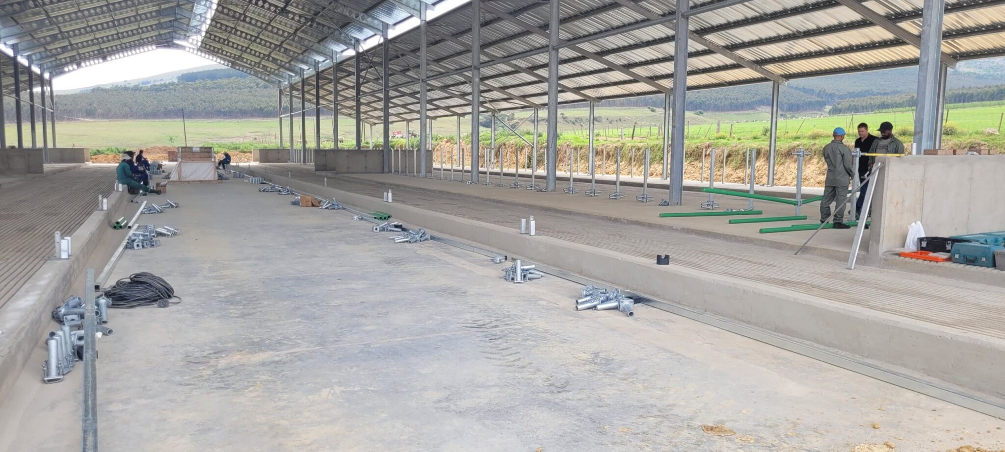 Exciting developments are taking place inside the newly constructed cow shed: The cow comfort equipment is being installed!