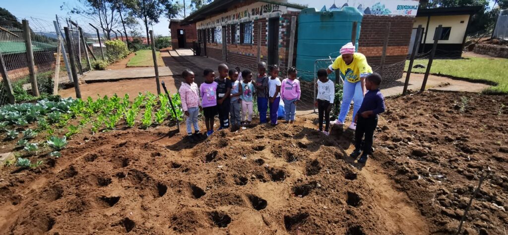 On 18 September 2025, we had the joy of visiting two crèches—Momotheka Crèche and Sebenzokuhle Crèche—to plant vegetable seedlings and share the love of growing food with the little ones.