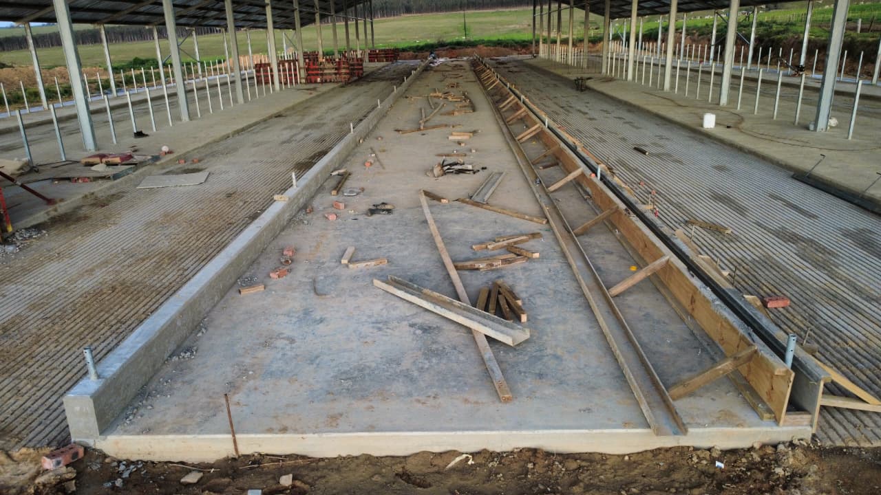 Exciting developments are taking place inside the newly constructed cow shed! The concrete for the first row of the flooring has been successfully poured, marking a key milestone in the building process.