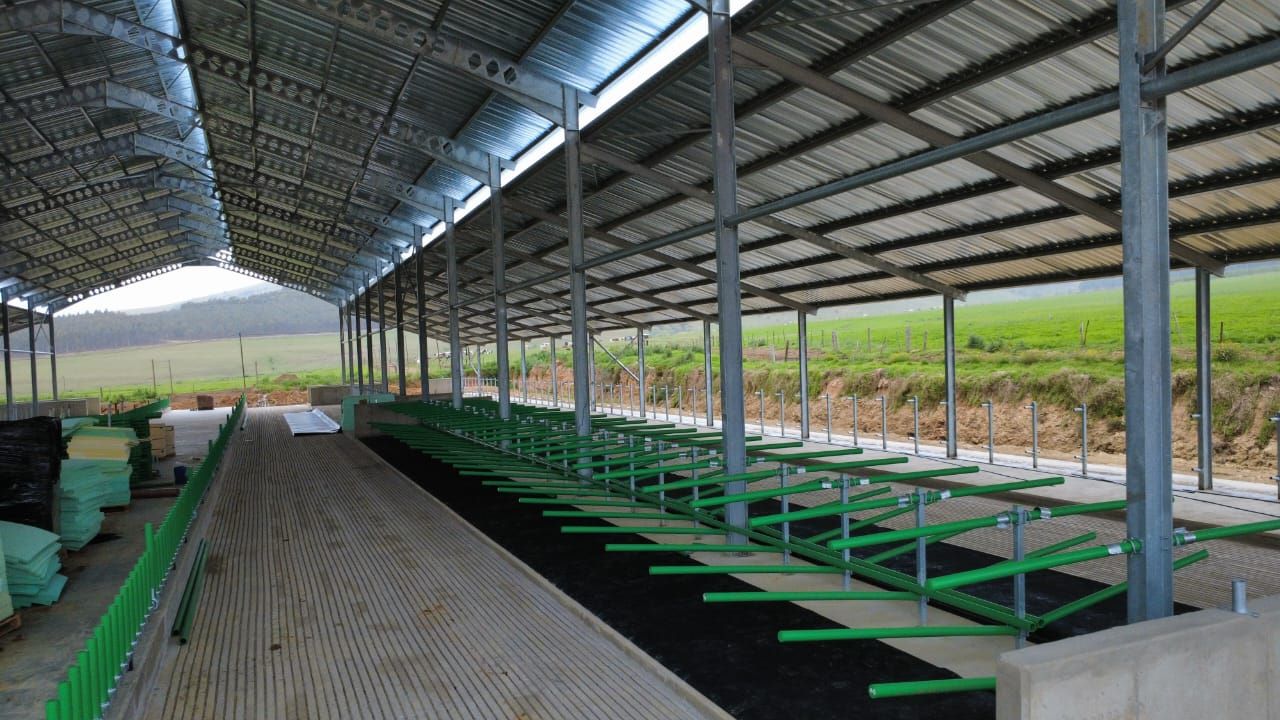 Exciting developments are taking place inside the newly constructed cow shed: The cow comfort equipment is being installed!